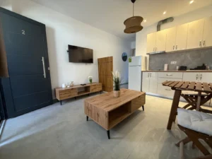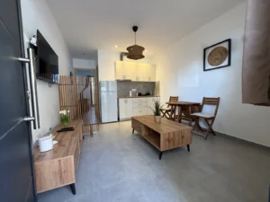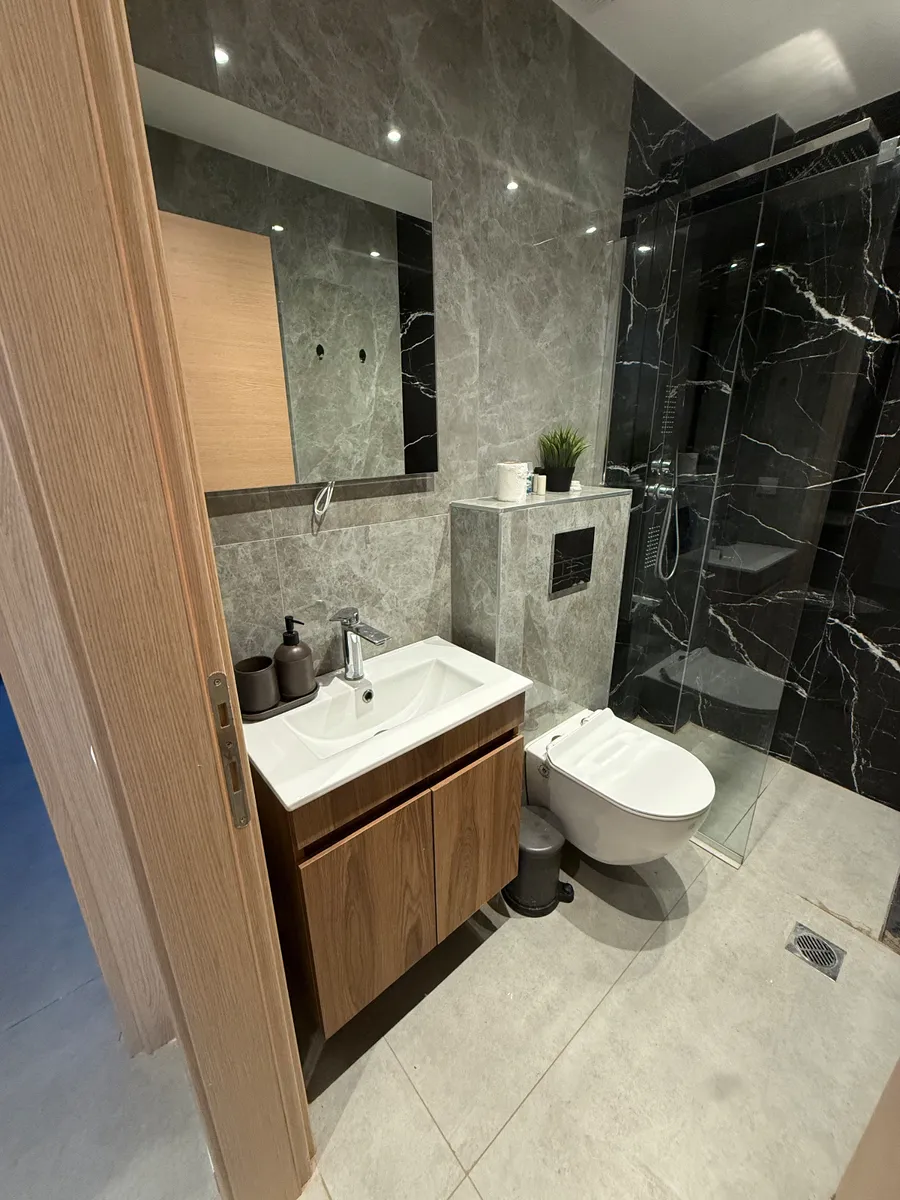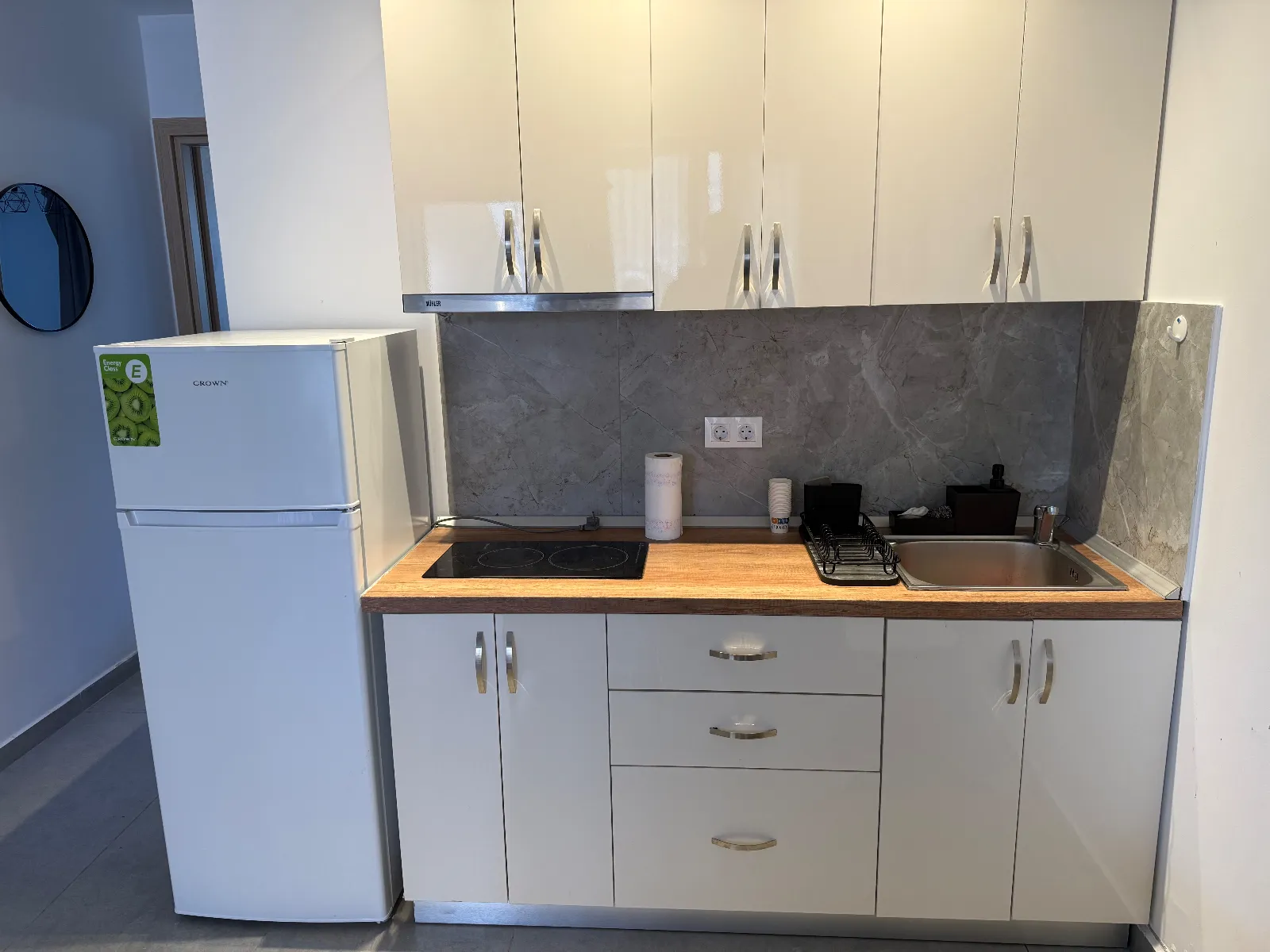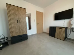 Studio o powierzchni 32,00 m² znajduje się na półpiwnicy i oferuje 1 sypialnię, kuchnię z salonem i łazienkę. Nieruchomość oferuje również ogrzewanie: indywidualne elektryczne, podłogi wyłożone kafelkami, aluminiowe ramy okienne, drzwi pancerne, basen, klimatyzację, sprzęt AGD, podgrzewacz wody zasilany energią słoneczną oraz otwartą przestrzeń. Budynek został wybudowany w 2025 roku. Klasa energetyczna budynku: A+