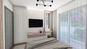 Studio o powierzchni 43 m² znajduje się na parterze i oferuje 1 sypialnię, otwartą kuchnię z salonem i łazienkę. Nieruchomość oferuje również ogrzewanie: indywidualne elektryczne, podłogę wyłożoną kafelkami, niczym niezakłócony widok, aluminiowe ramy okienne, drzwi pancerne, parking, ogród, klimatyzację, solarny podgrzewacz wody, grill i otwartą przestrzeń. Budowa rozpoczęła się w 2024 roku. Klasa energetyczna budynku: A+. Odległość od morza: 800 metrów.
